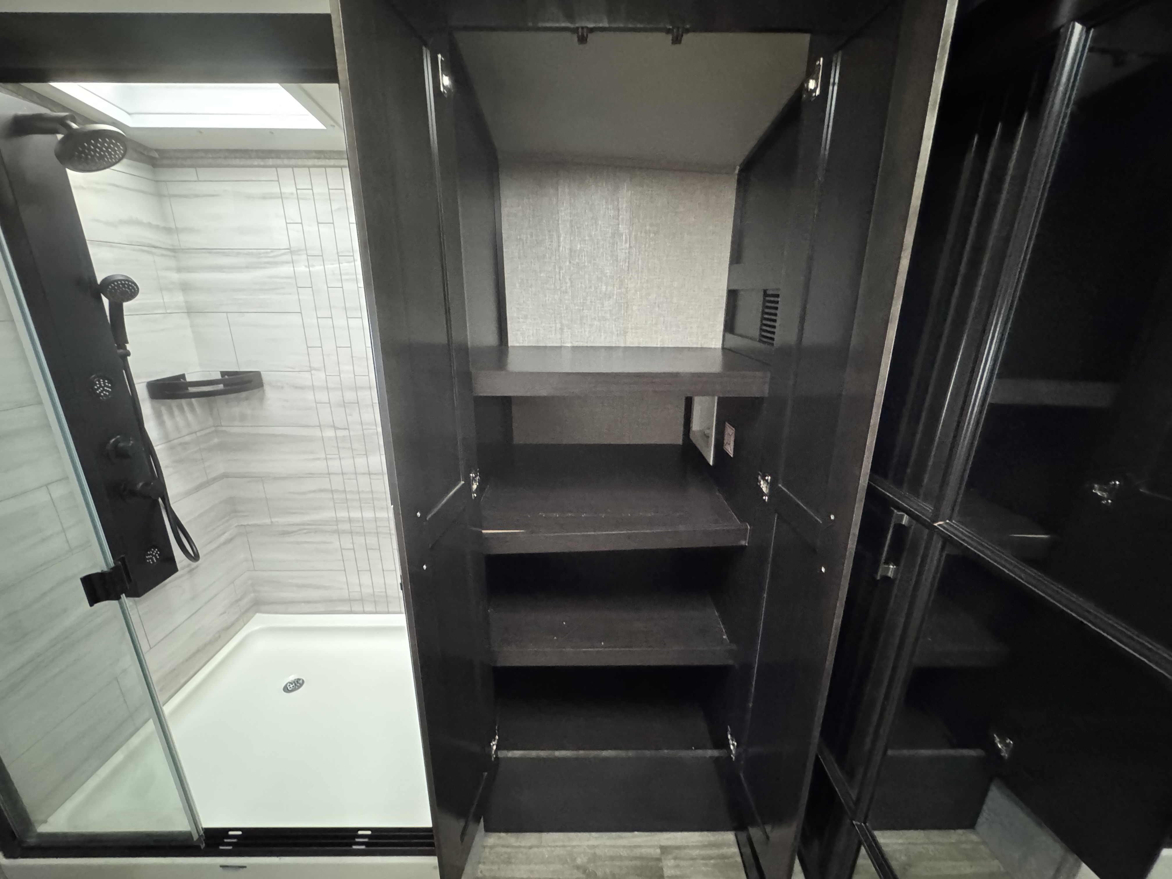 - Doorside compartment framed and vented for third propane bottle