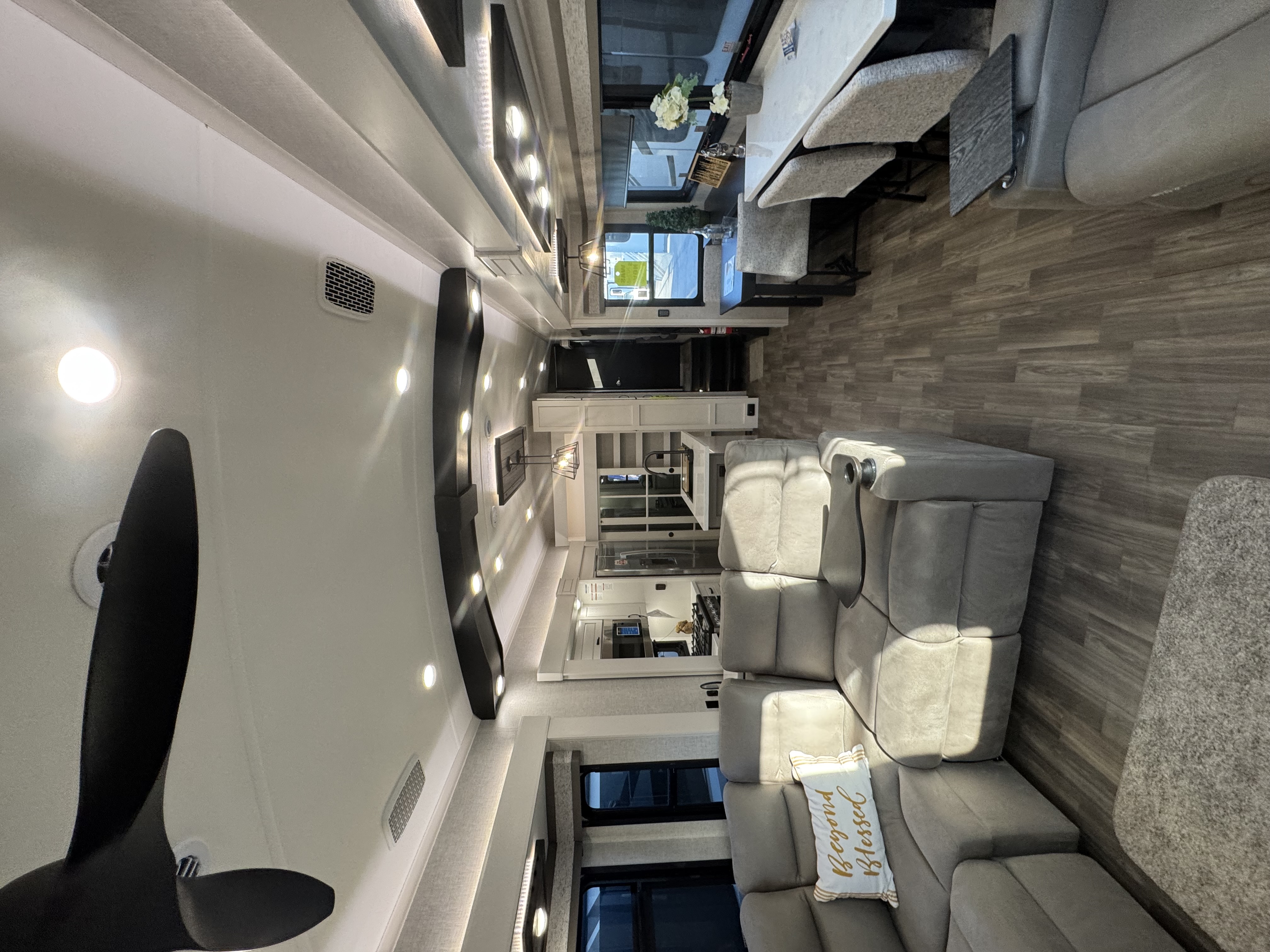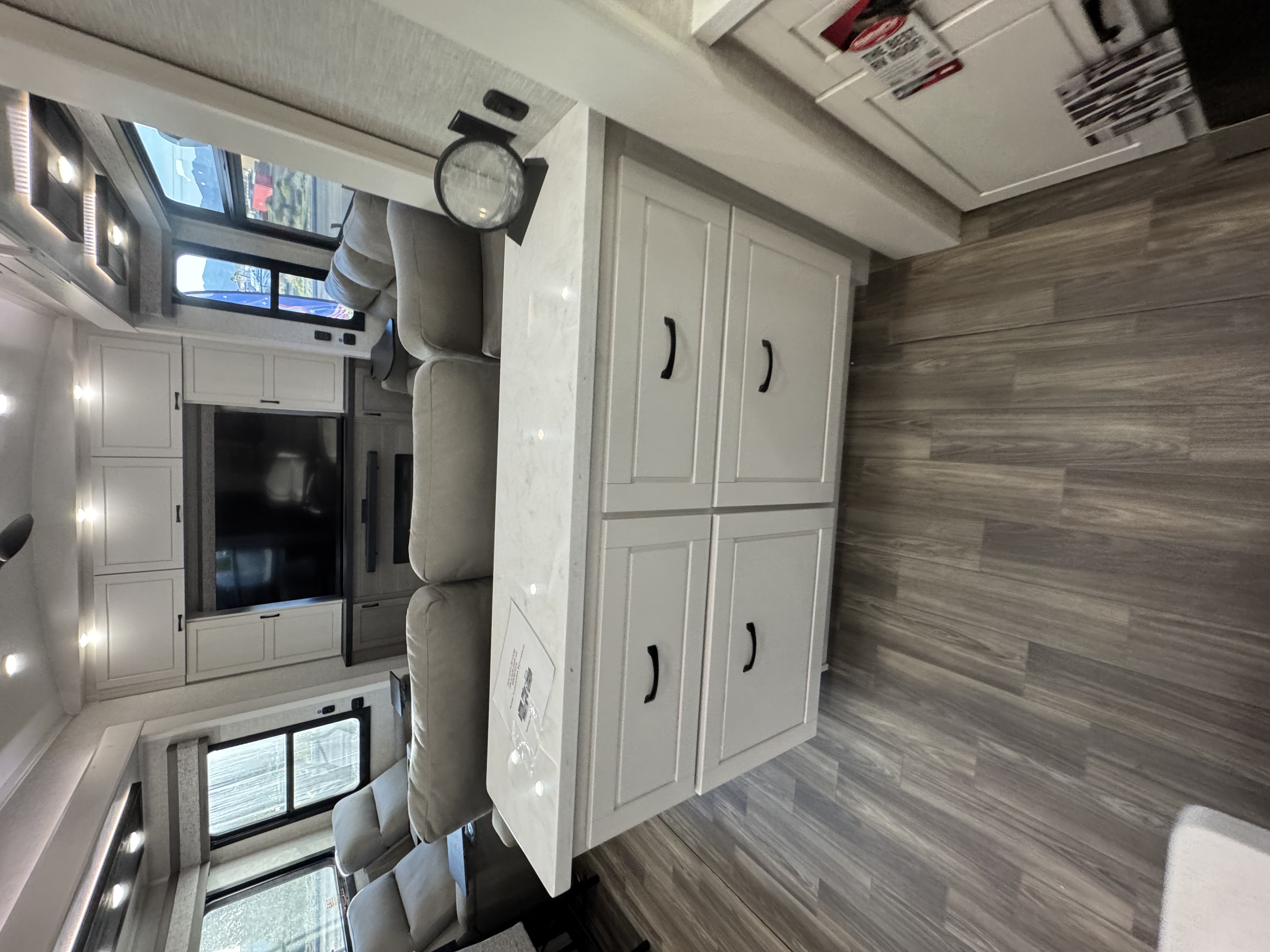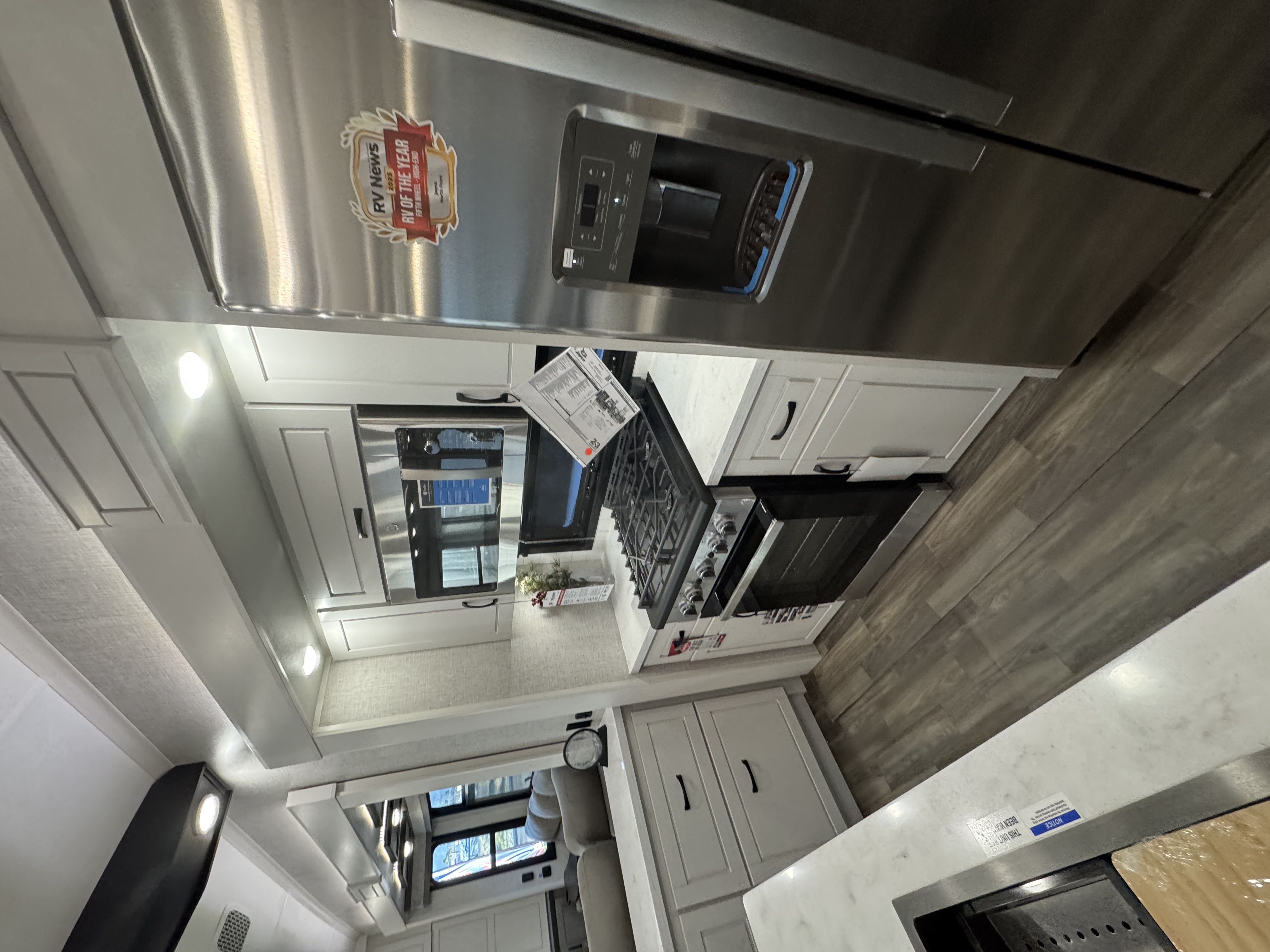 Inside the North Point, residential features abound, including GE Profile appliances – a GE 21 cu. ft. residential refrigerator with an 1800W inverter, GE Profile Series 30 in. residential convection microwave with built-in air fryer and a residential 24 in. range. These residential appliances provide convenience that mirrors the ease of cooking at home. An added bonus is the built-in microwave air fryer, reducing the need for one more small appliance to clutter the counter space. The kitchen also features a new flip-up island countertop extension and pull-out utility storage under the sink (most models) for extended workspace for cooking, entertaining or serving food.