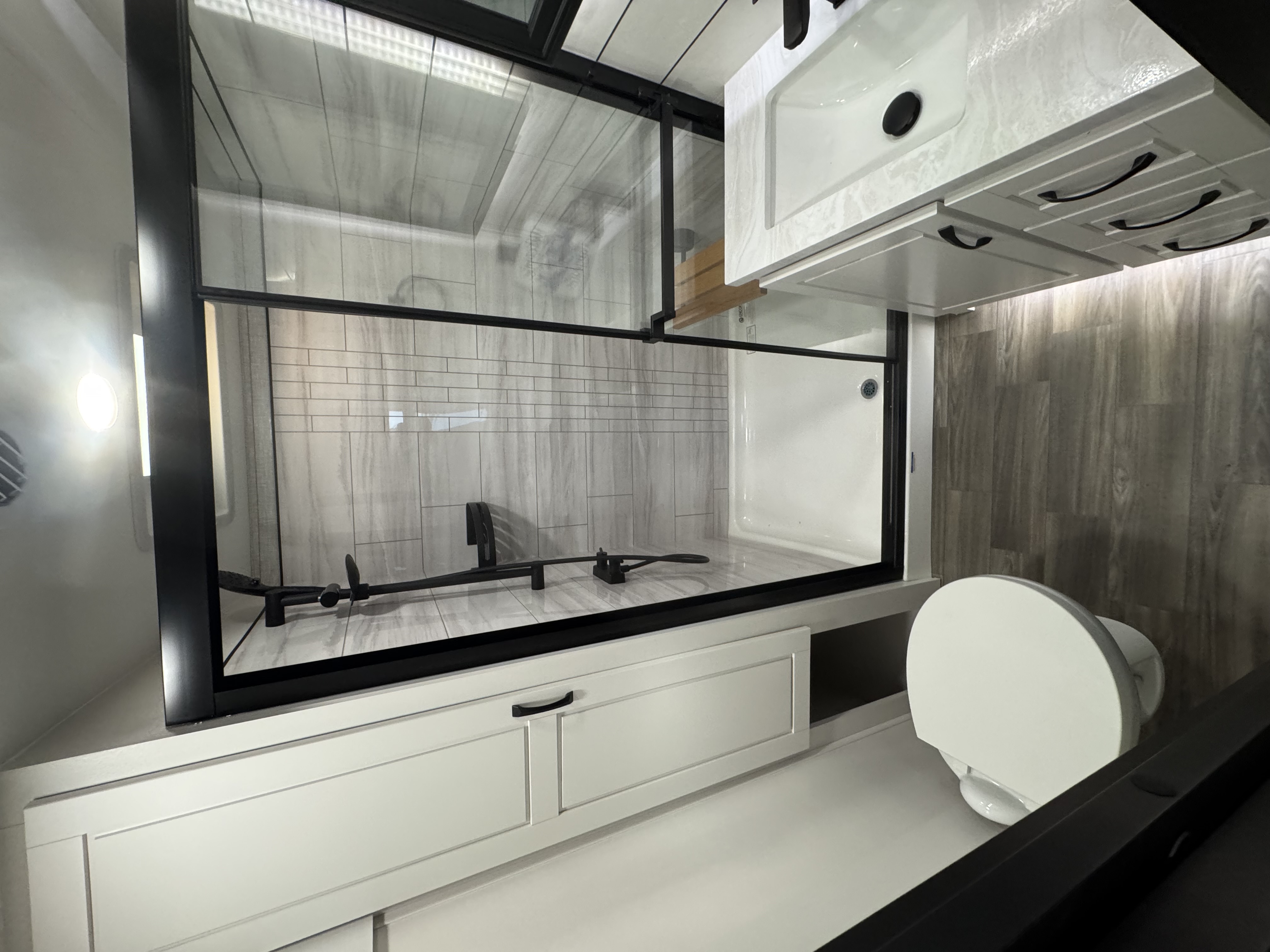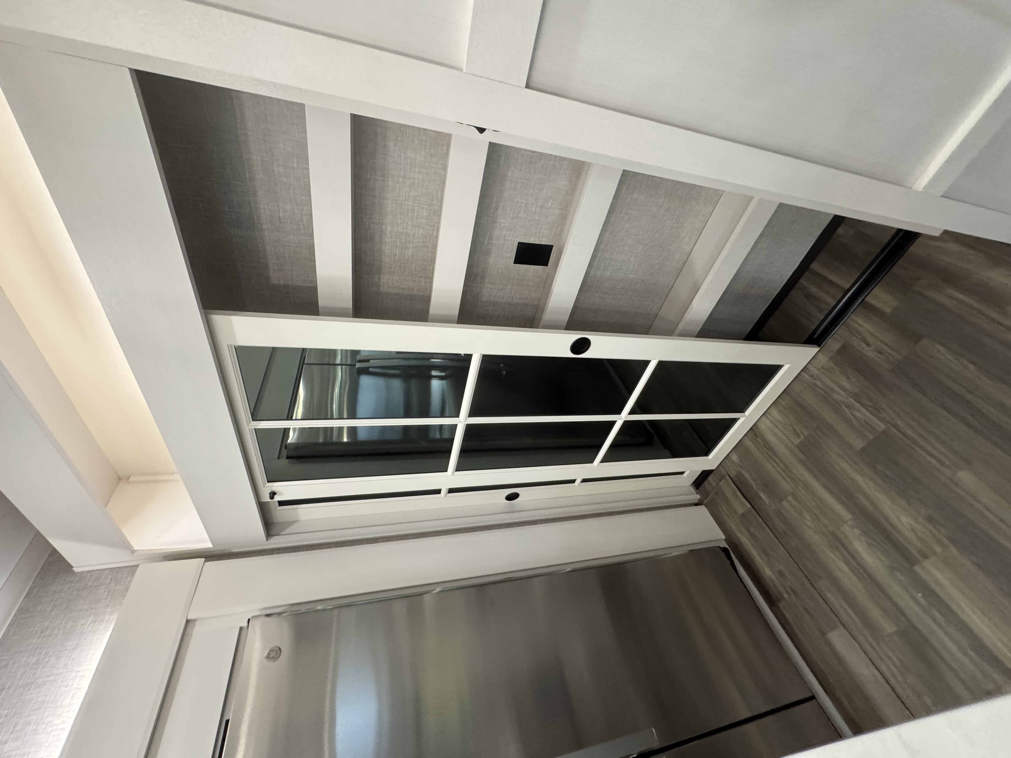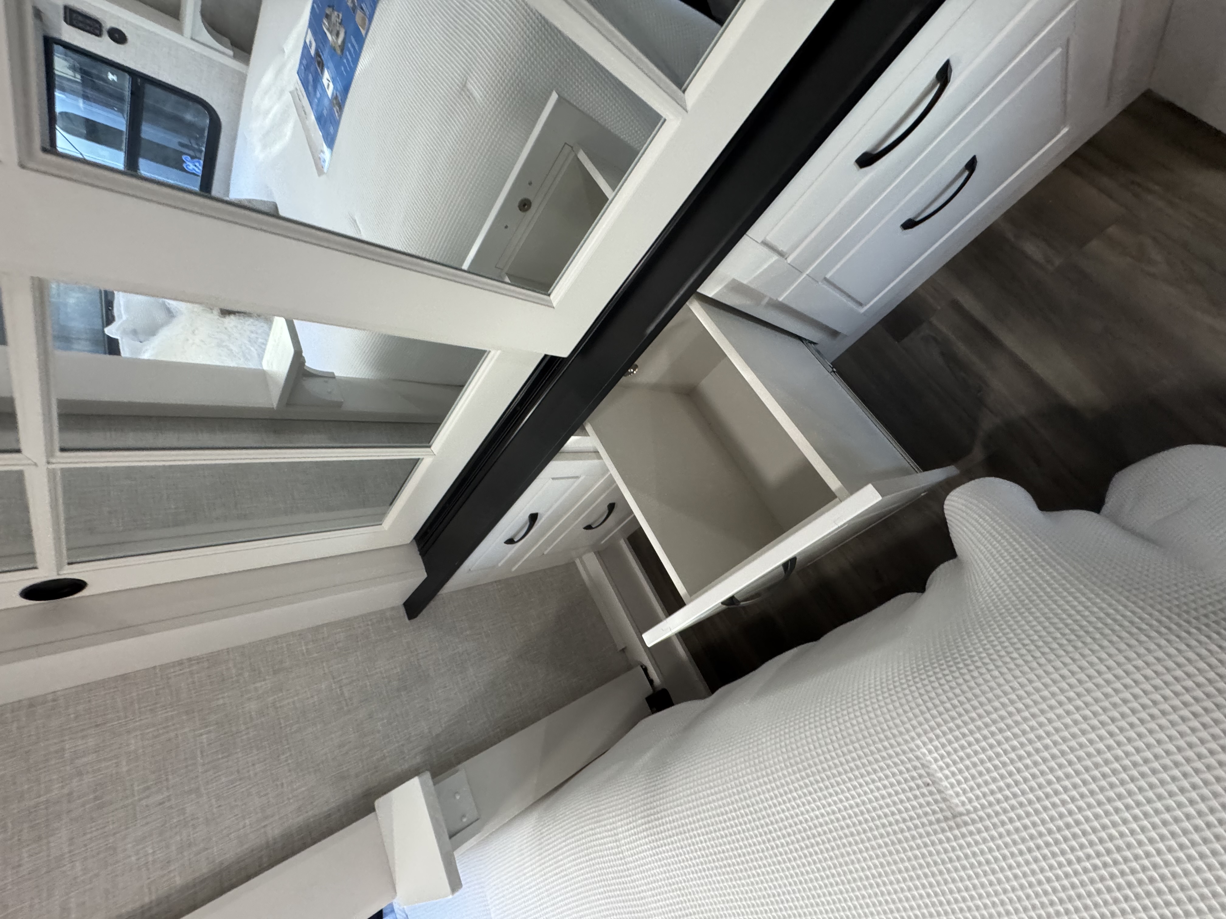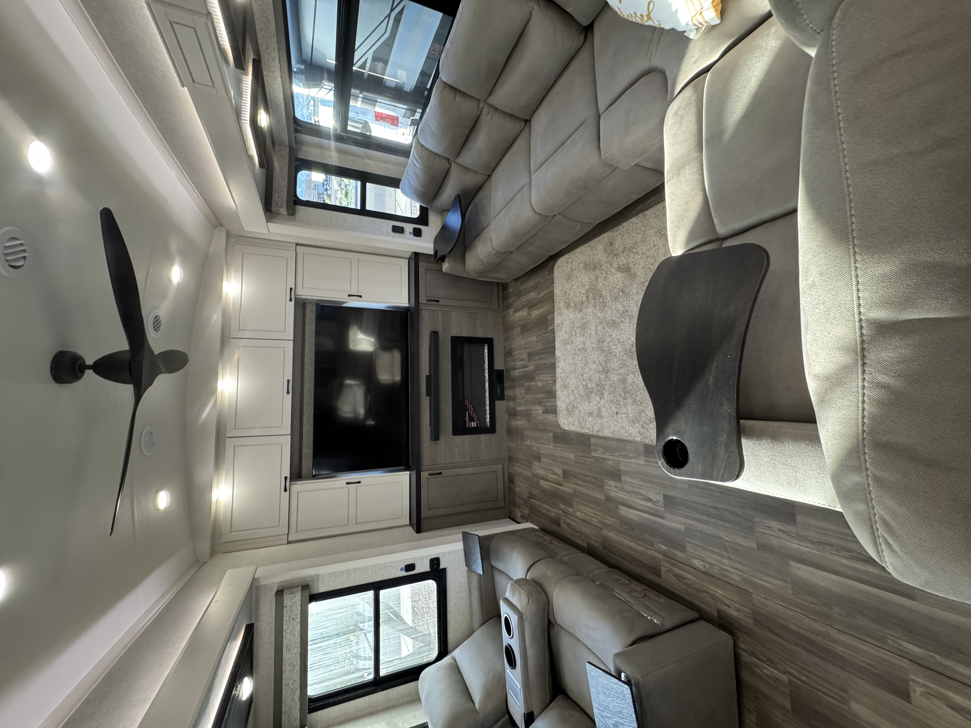 Inside the North Point, residential features abound, including GE Profile appliances – a GE 21 cu. ft. residential refrigerator with an 1800W inverter, GE Profile Series 30 in. residential convection microwave with built-in air fryer and a residential 24 in. range. These residential appliances provide convenience that mirrors the ease of cooking at home. An added bonus is the built-in microwave air fryer, reducing the need for one more small appliance to clutter the counter space. The kitchen also features a new flip-up island countertop extension and pull-out utility storage under the sink (most models) for extended workspace for cooking, entertaining or serving food.
