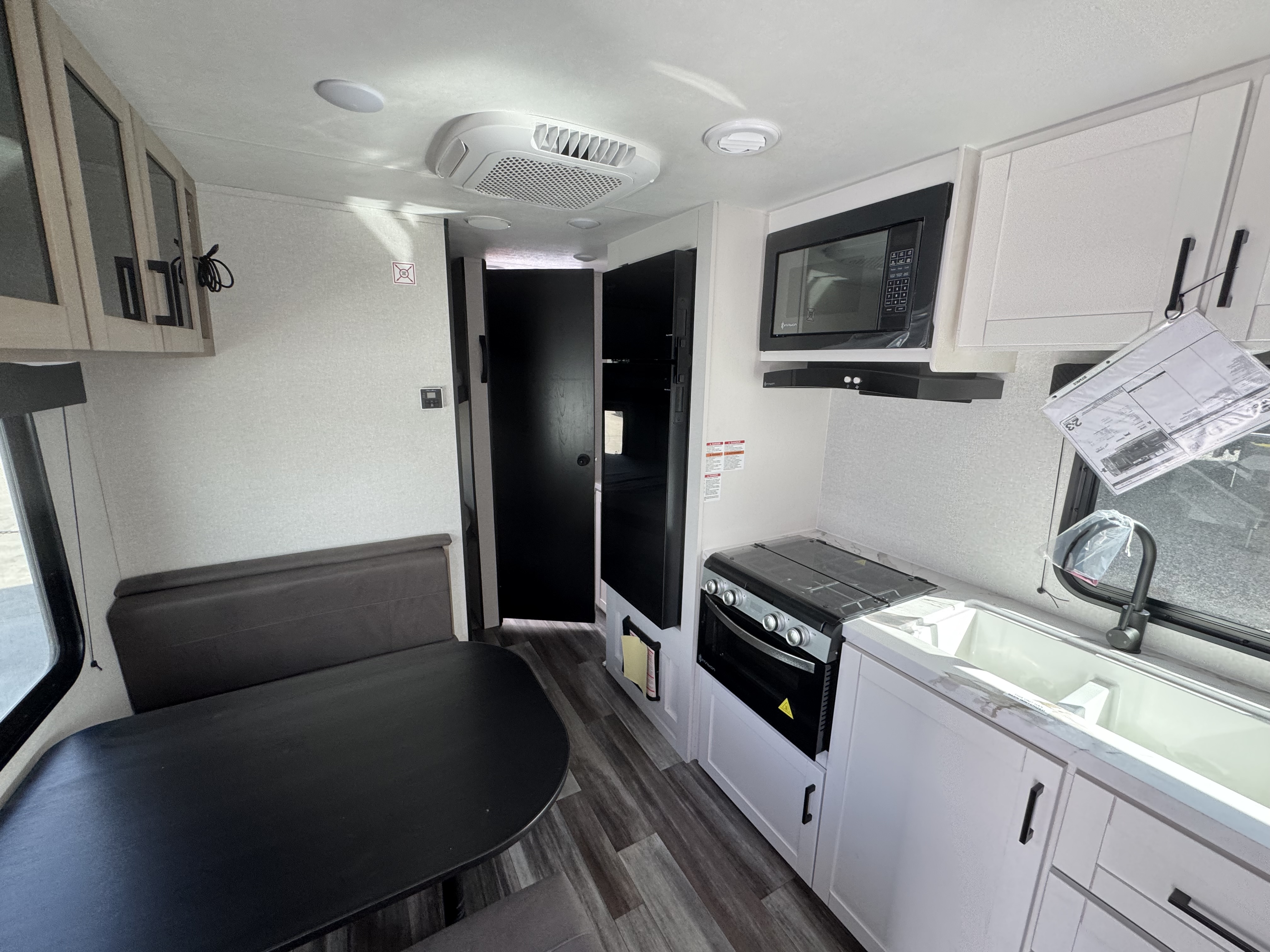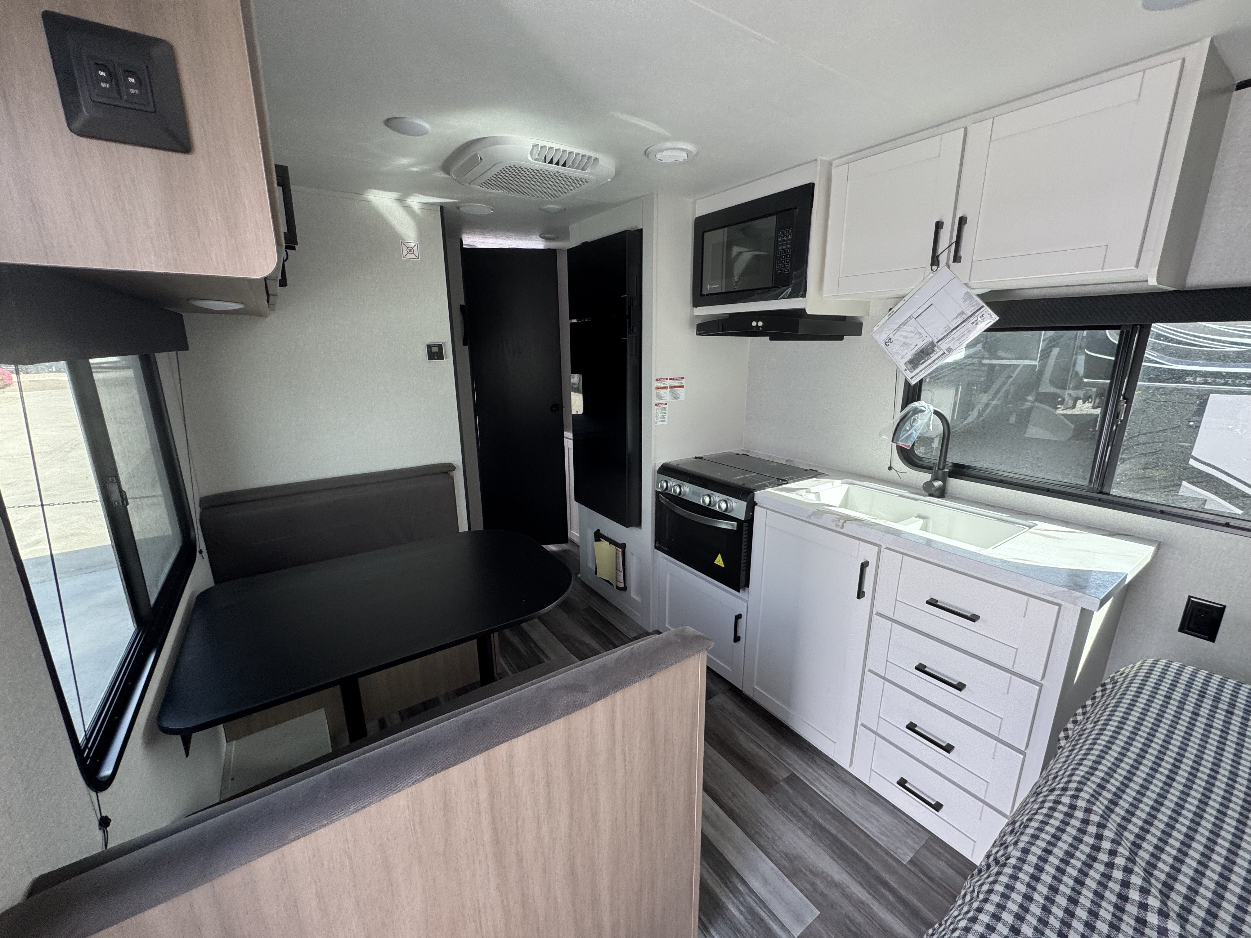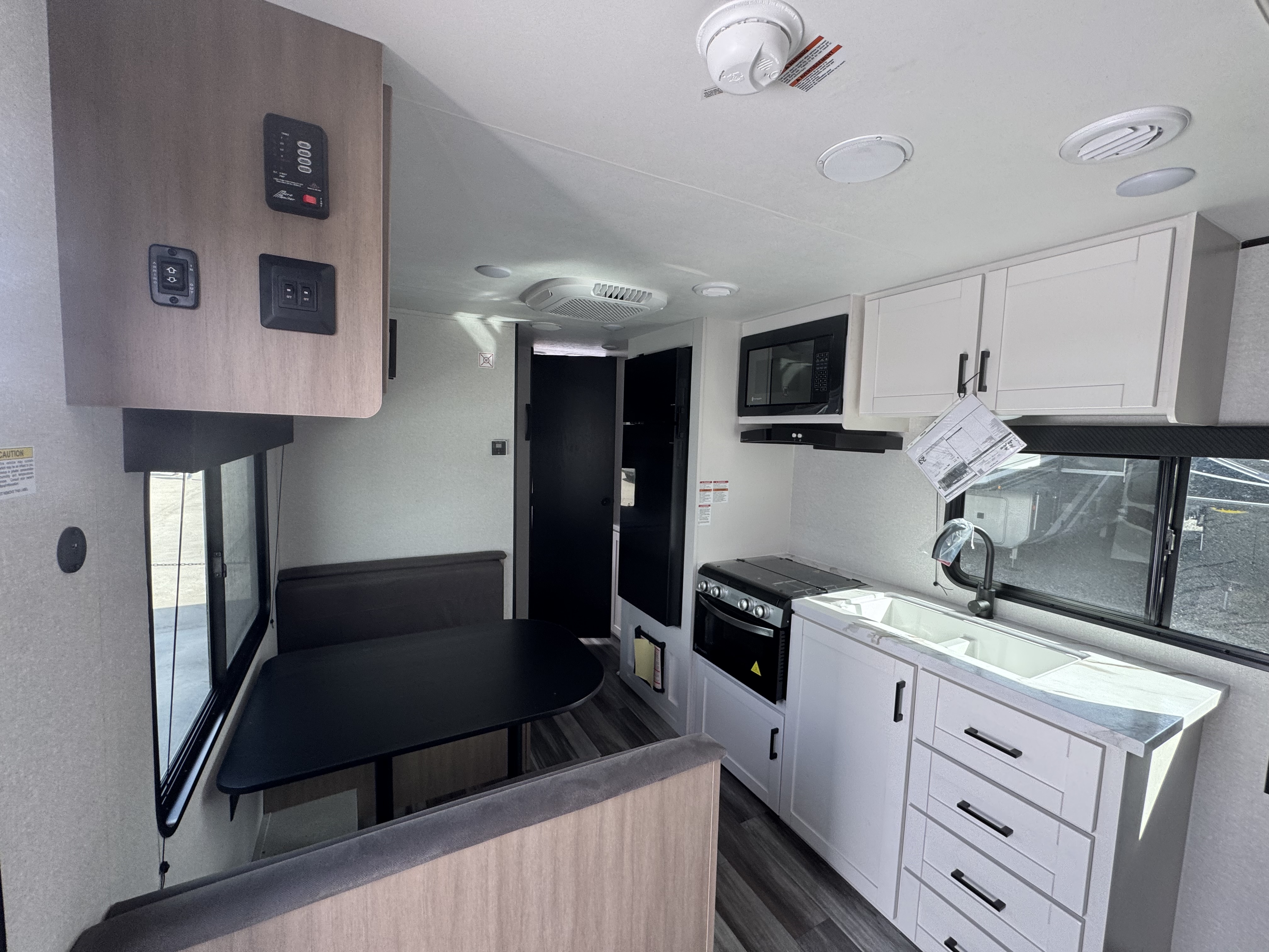 After a long day of exploring, step inside to enjoy instant hot water from the on-demand tankless water heater—up to 60,000 BTU in standard models and 42,000 BTU in the Sport Edition—so you can clean up comfortably, just like at home. Oversized G20 dark-tinted windows flood the space with natural light while blocking heat and UV rays, giving you both stunning views and added privacy.