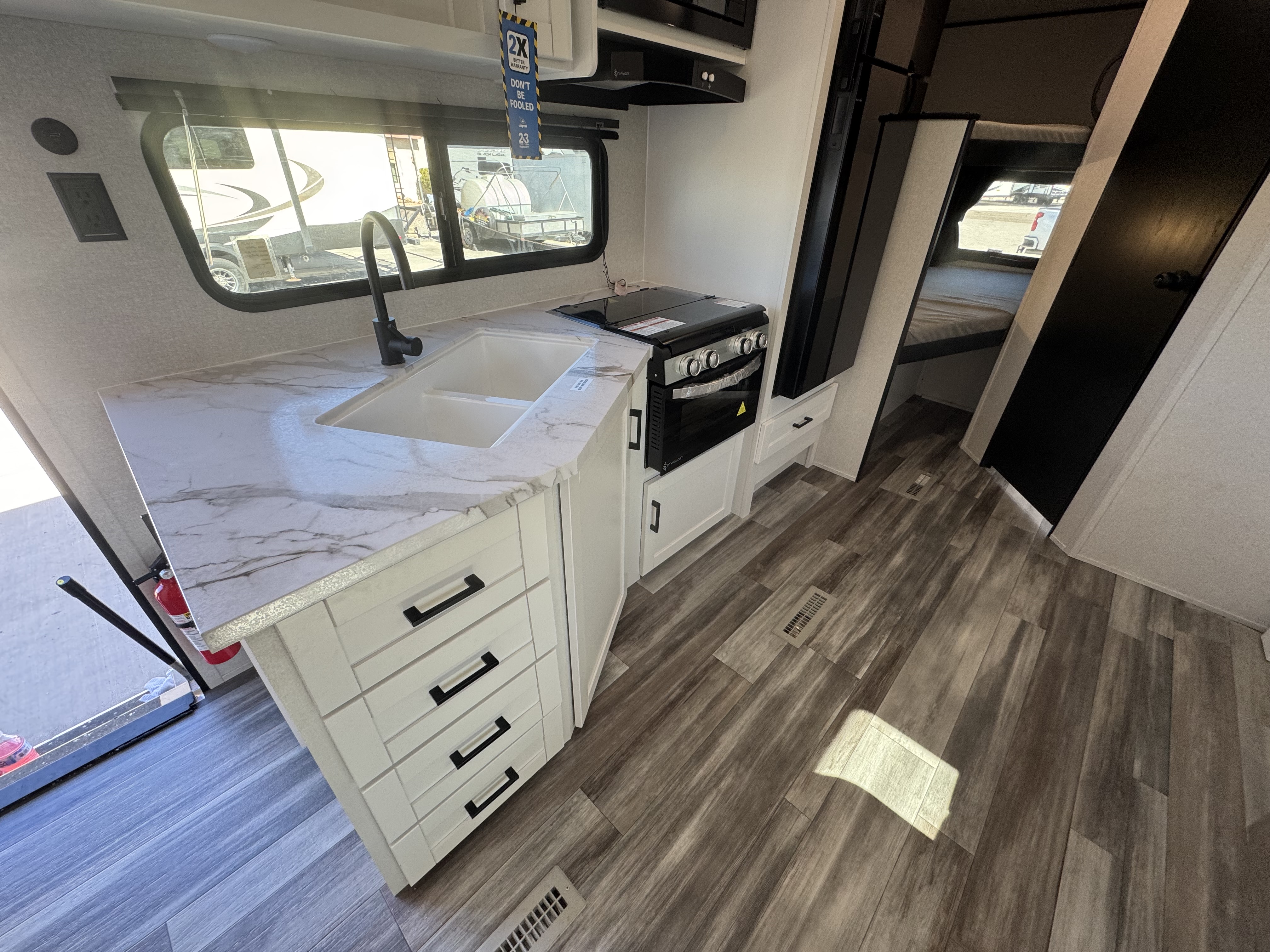 The Jay Flight SLX Travel Trailer is built for easy setup, spacious comfort and rugged durability—so you can spend less time worrying about logistics and more time making memories. With an oversized freshwater tank—up to 25% larger than the competition—you can camp longer without worrying about refills. Western-built models go even further with 76 or 80 gal. capacities, all reinforced with rugged steel bars, not flimsy aluminum straps.