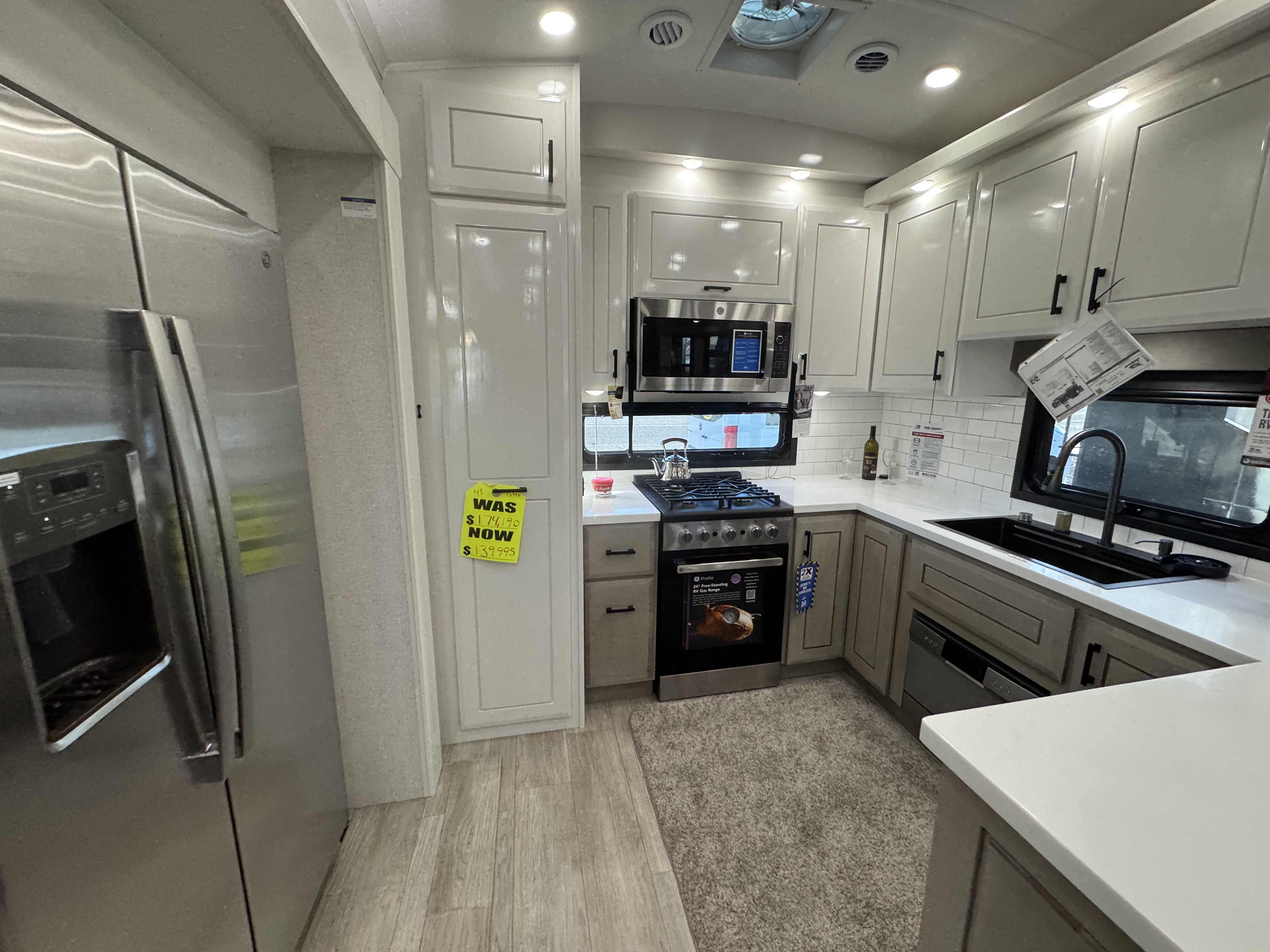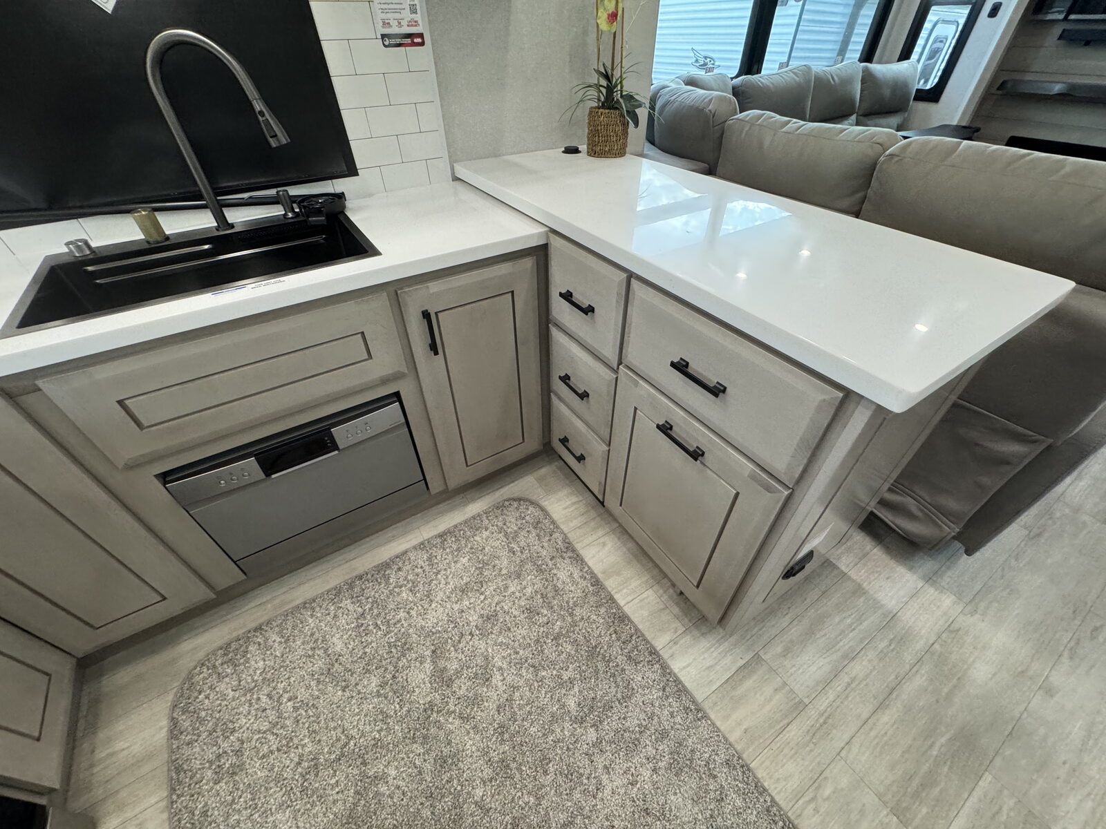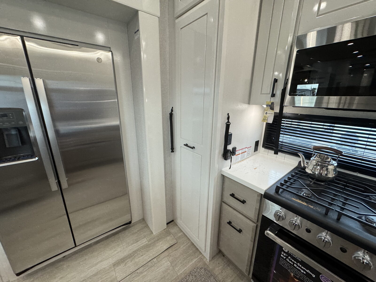 Step inside and experience the Jayco difference. From handcrafted solid hardwood maple cabinetry to sleek solid-surface countertops, every detail reflects intentional design and superior build quality. GE’s premium kitchen suite includes a 21 cu. ft. residential refrigerator, a 30 in. convection microwave with built-in air fryer, and a 24 in. high-output range—along with an available built-in dishwasher and extended bar top for effortless entertaining.