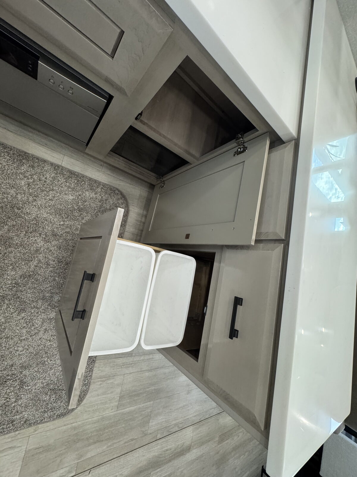 - Hidden hinges, magnet latches, and soft-close cabinet doors and drawers
