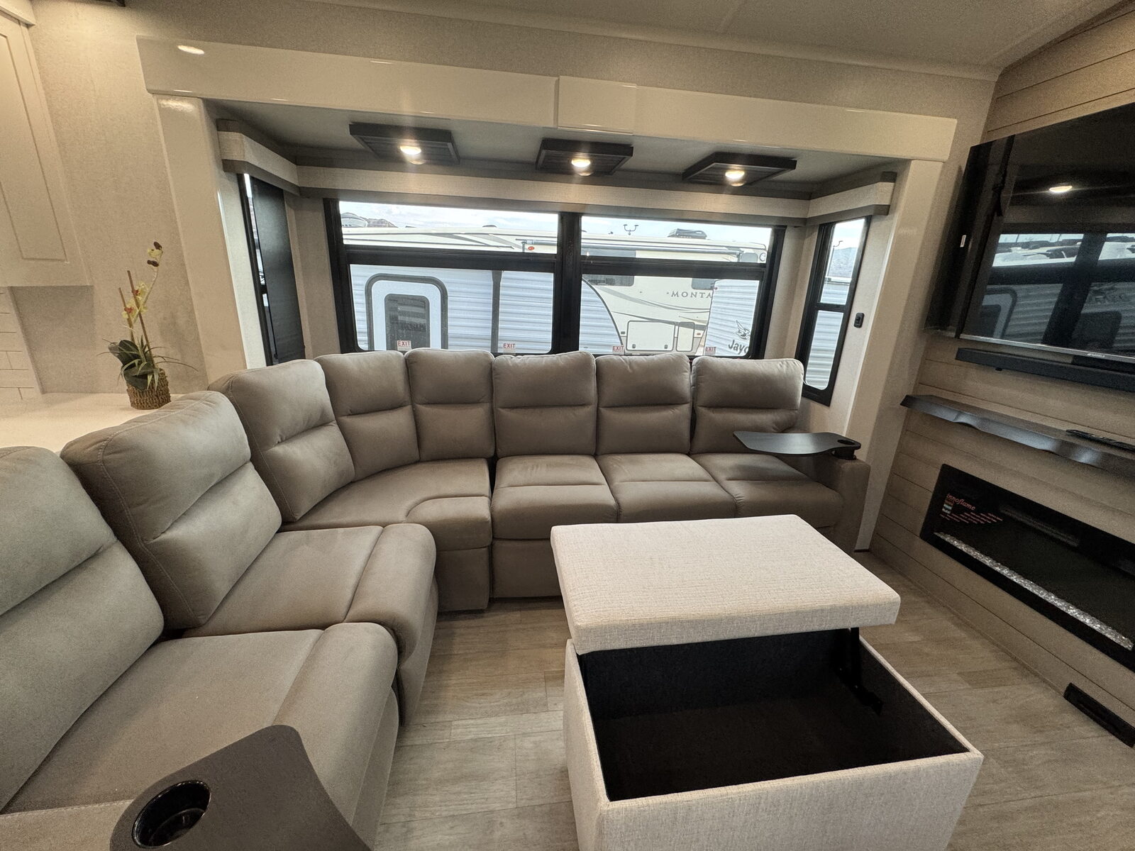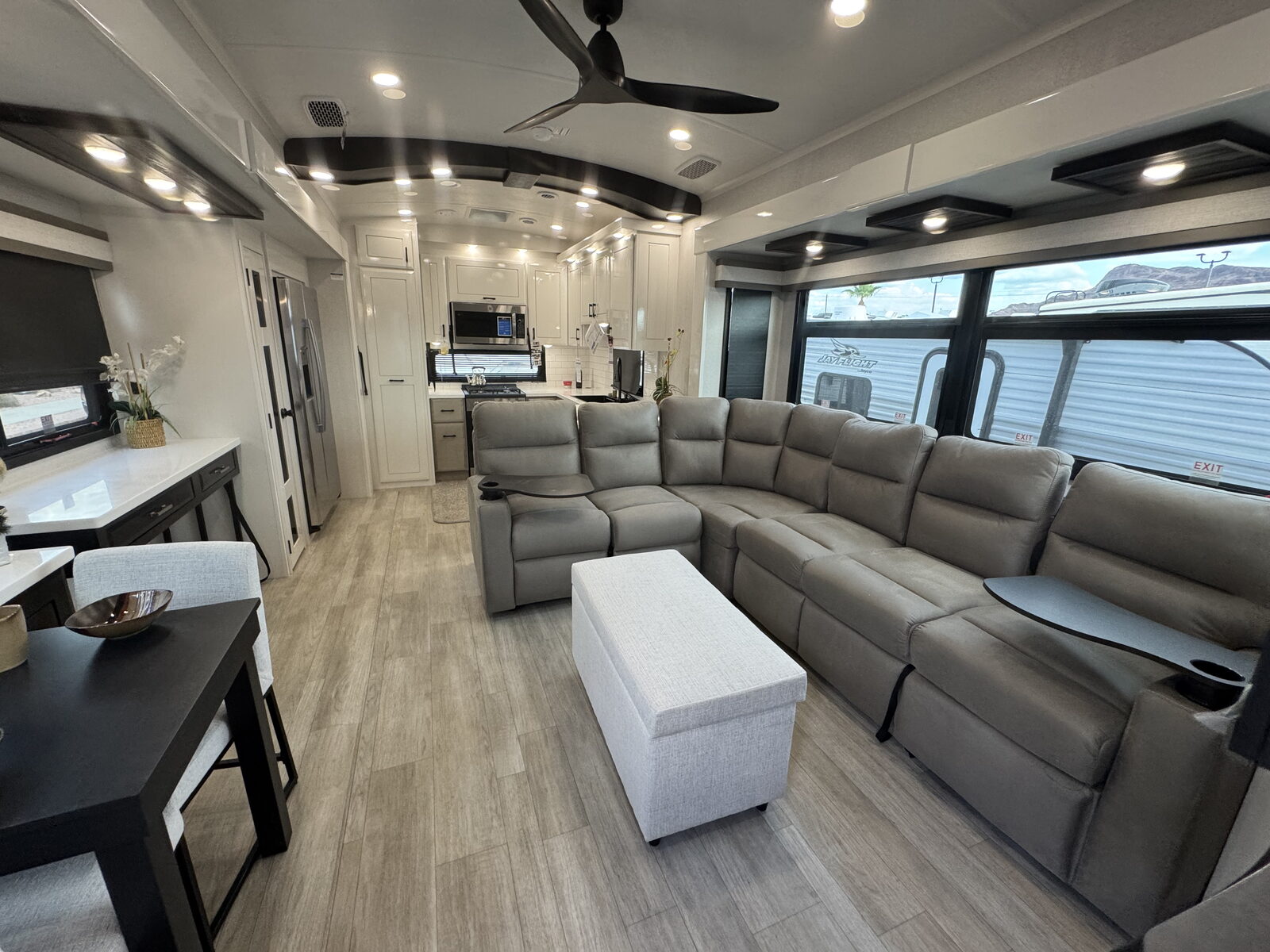 Technology and convenience are built into every corner. JAYCOMMAND® puts control of key systems at your fingertips, while the exclusive NuvoH2O Water Purification System delivers fresh, scale-free water at every faucet—ideal for both dry camping and full hook-up sites. With its salt-free citrus filtration, NuvoH2O helps protect plumbing and appliances while keeping your skin and water cleaner.