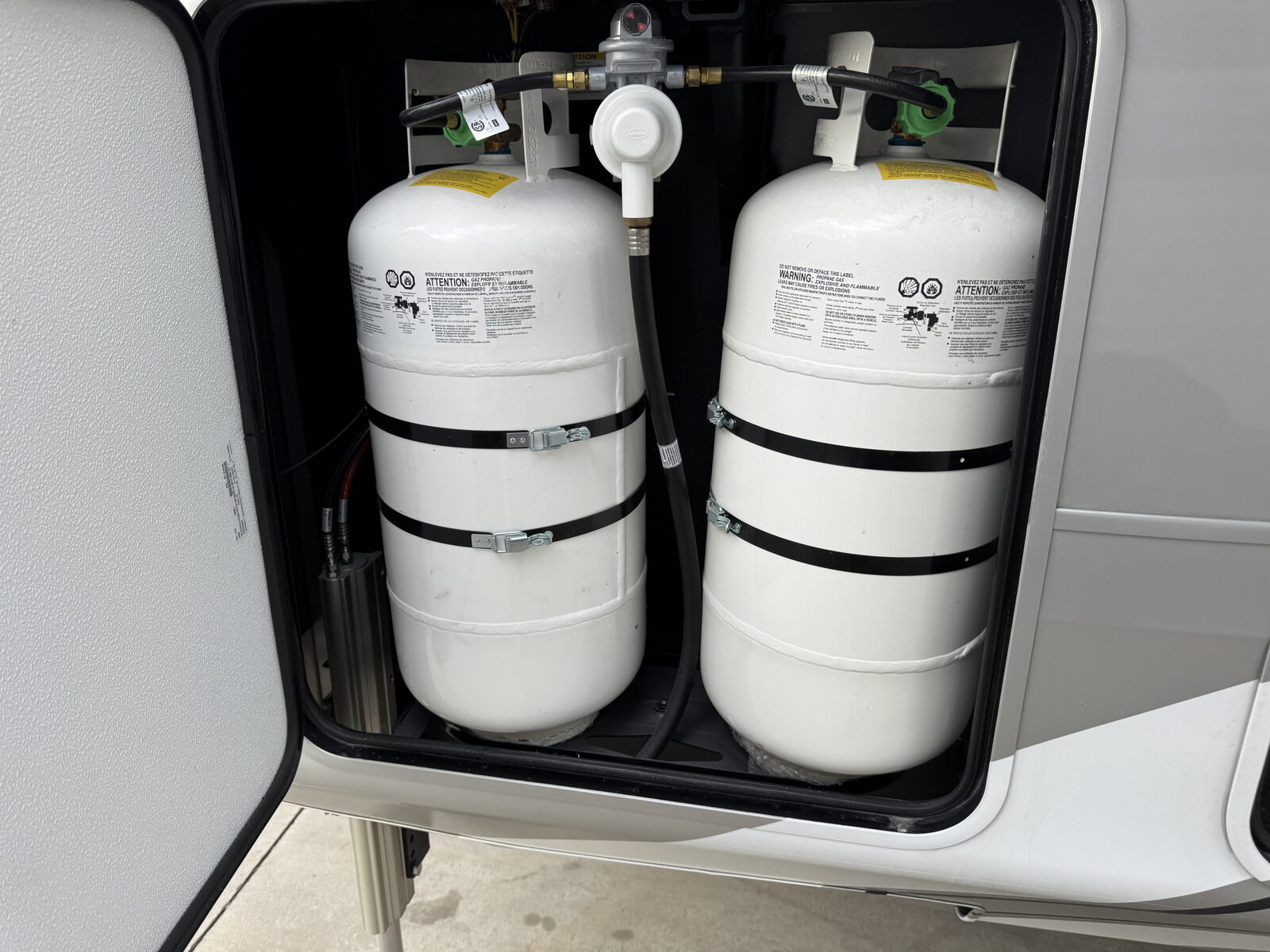 - (3) 40 lb. LP propane bottles with auto regulator