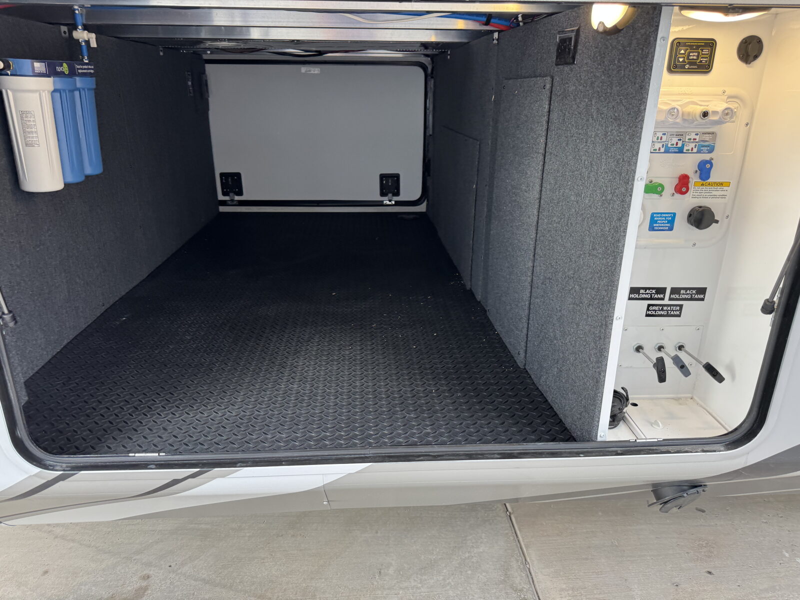 - Built-in sewer hose carrier