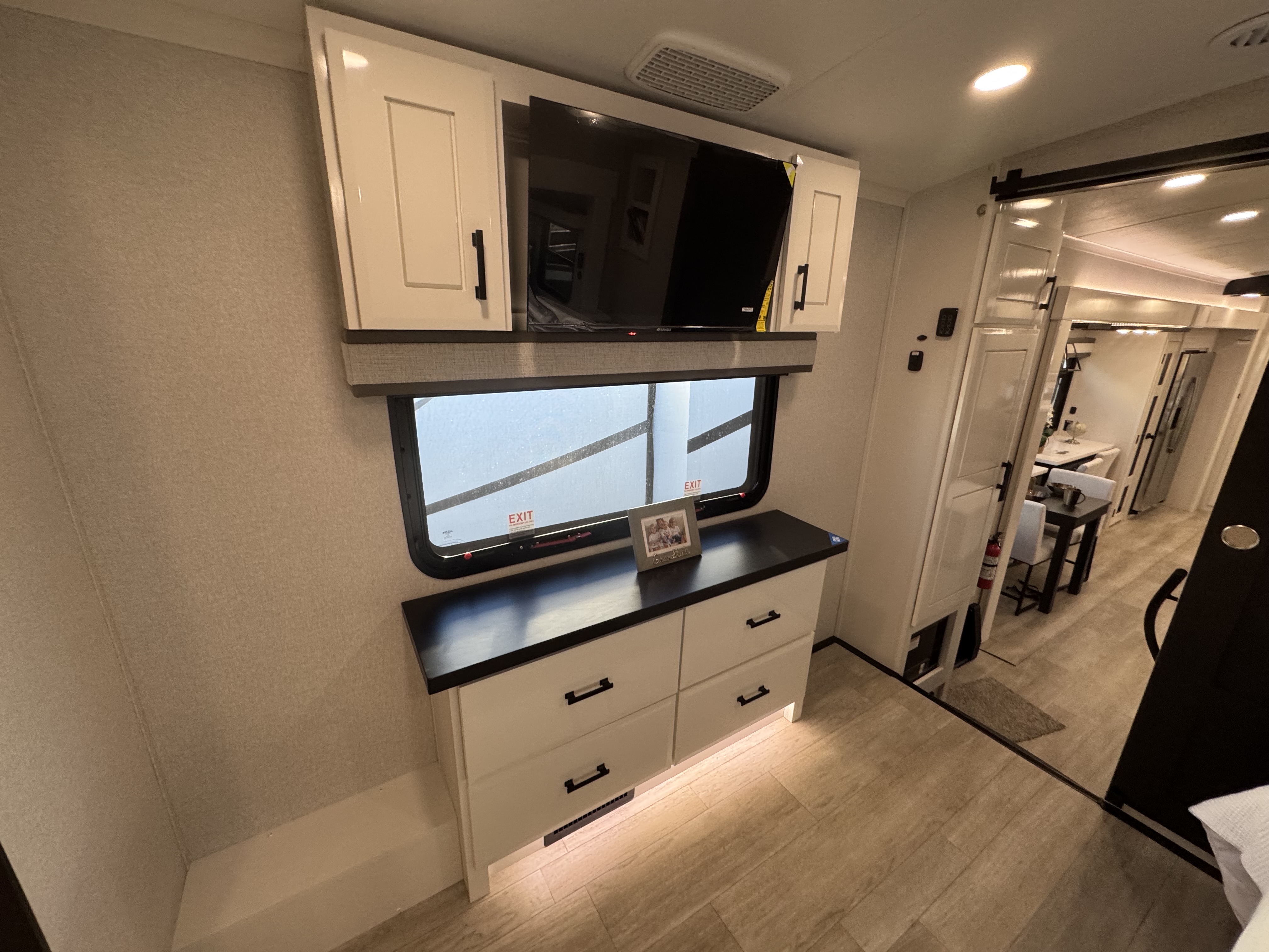 - Flip-up hidden storage in bedroom chest of drawers (select models)