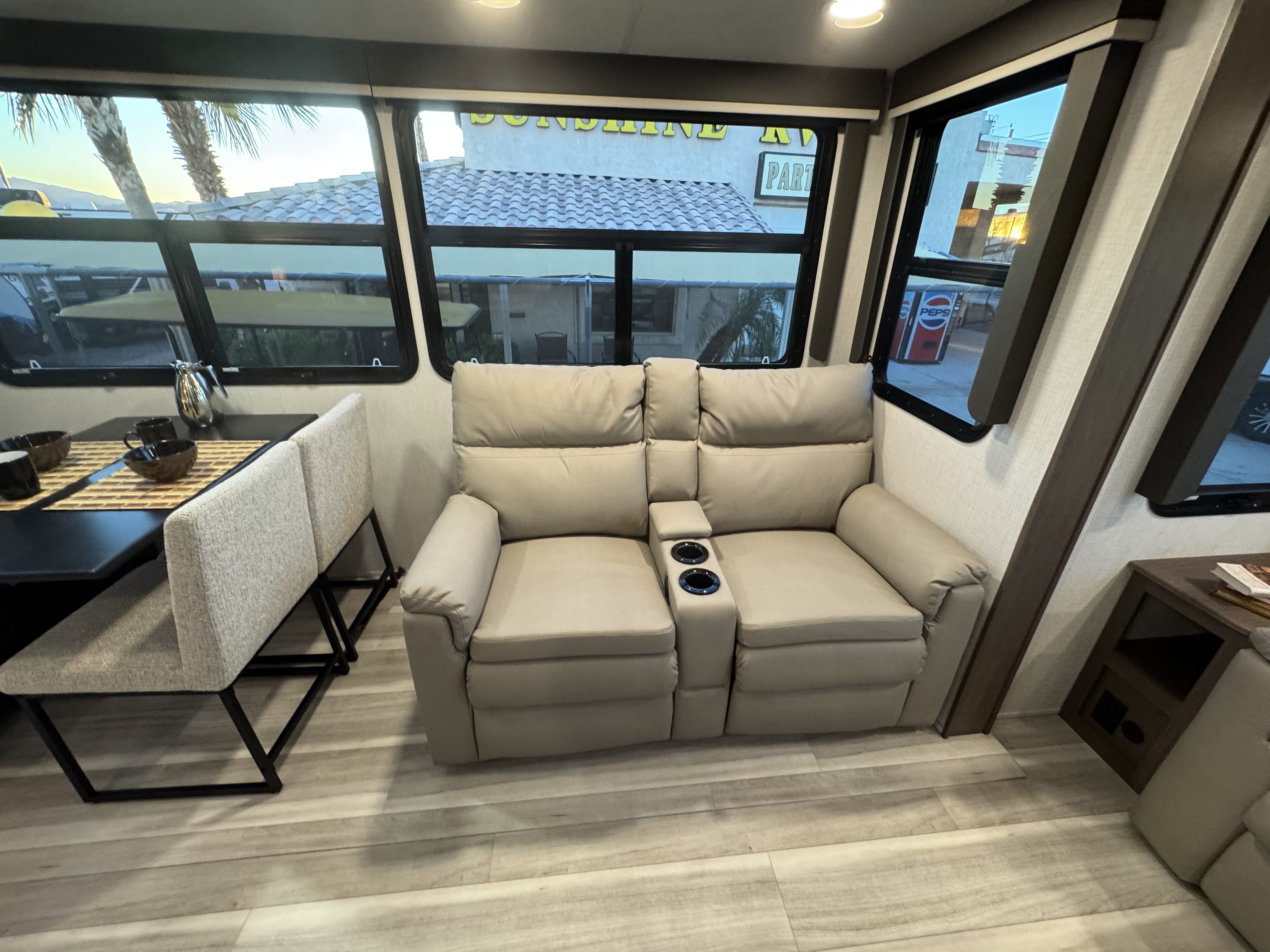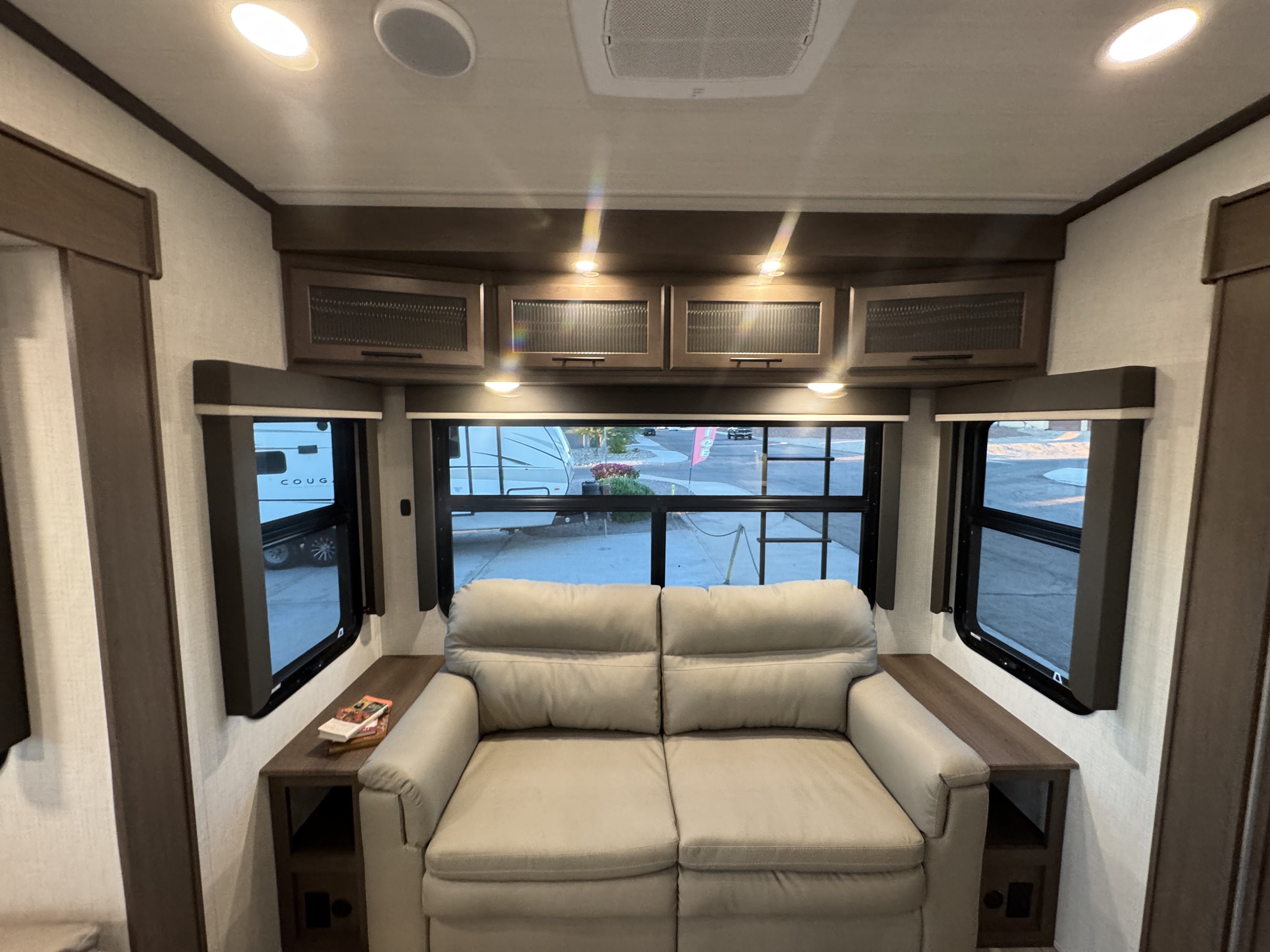 - Dimmable lighting: main ceiling, main slideout